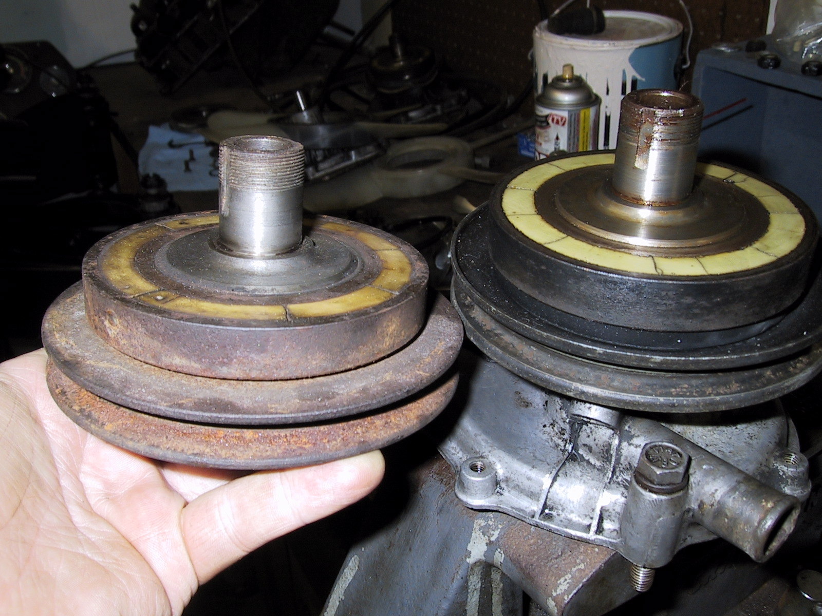 | Description: | Side by side comparison of the type 1 (cast) and type 2 (stamped) pulleys |
